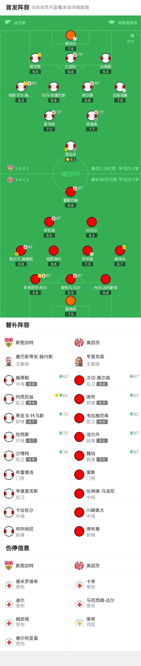北京时间10月27日德国足球顶级联赛 联赛 第8轮,斯图加特主场对阵美因茨。斯图加特菲里希破门,昂达夫破门。美因茨阿米里破门。最终比分斯图加特 2-1 美因茨。