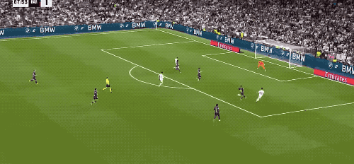 第43分钟,皇马卷土重来,维尼修斯下底传中,米利唐头球回做,贝林厄姆轻松补射,皇马再次取得领先。