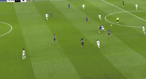 国家德比状况频出,第12分钟,皇马前场抢断,姆巴佩出其不意,一脚精彩世界波,打破僵局。