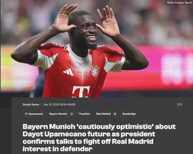 在接受慕尼黑晚报采访时,海纳说:“我们正在和乌帕梅卡诺沟通,我相信他在慕尼黑感到满足,这对他来讲显然也是一个重要的决定。
