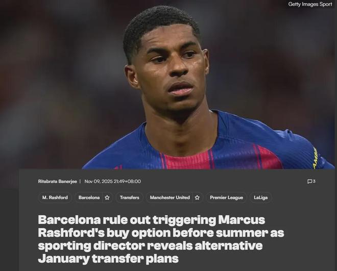 巴萨体育总监德科近日排除了在明年夏天之前激活拉什福德买断条款的可能性。