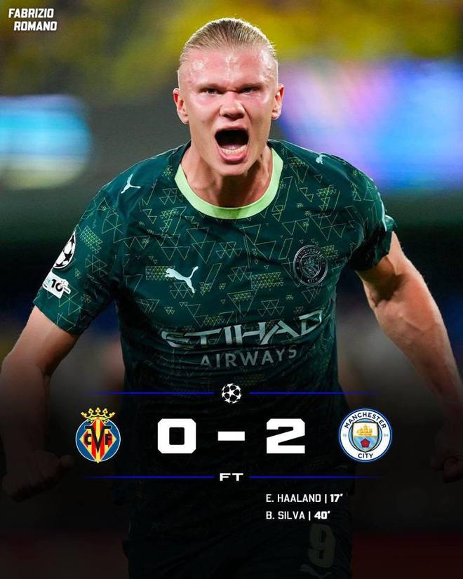 曼城客场2-0击败比利亚雷亚尔。哈兰德和B席的进球,帮助瓜迪奥拉轻松带走三分;